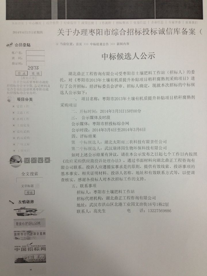 中標公示