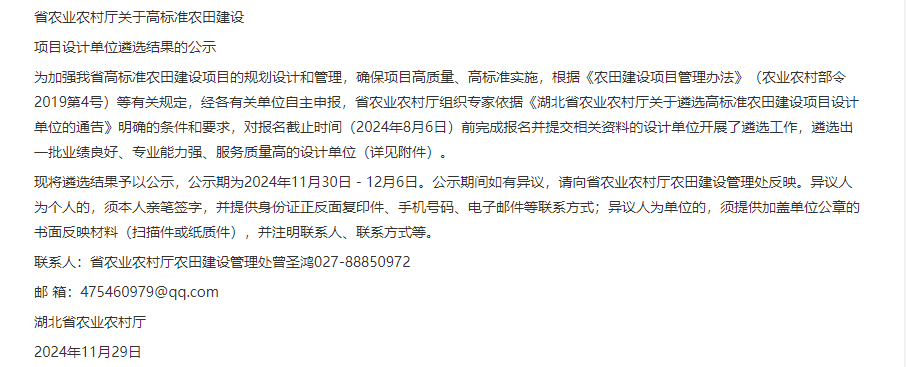 近日,鼎正成功入選湖北省農業農村廳高標準農田建設項目遴選設計單位。