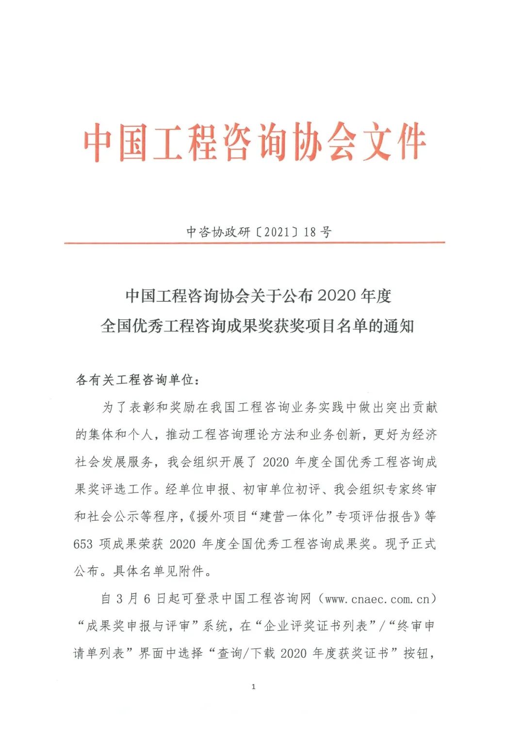 鼎正印記 | 再度獲獎 鼎正榮膺2020全國優秀工程咨詢成果獎