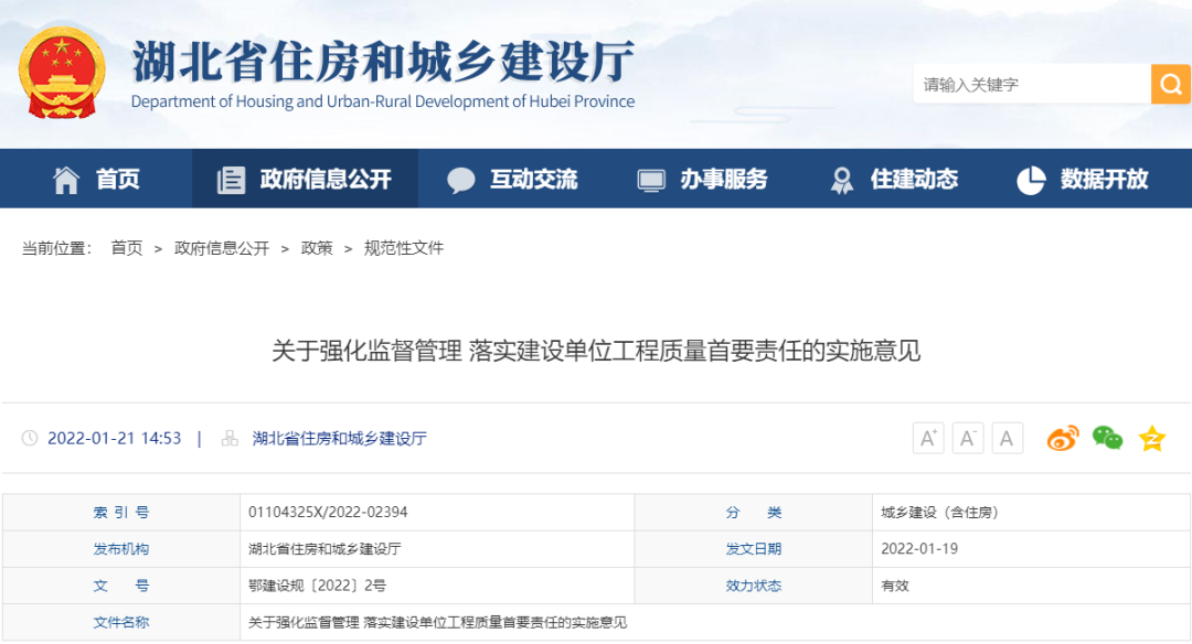 為貫徹落實《國務院辦公廳轉發住房城鄉建設部關于完善質量保障體系提升建筑工程品質指導意見的通知》(國辦函〔2019〕92號)《住房和城鄉建設部關于落實建設單位工程質量首要責任的通知》(建質規〔2020〕9號)要求,明晰并嚴格落實建設單位工程質量首要責任,進一步完善質量保障體系,切實提升建筑工程品質,不斷提高人民群眾滿意度,以當前建筑市場亟待解決的突出問題為導向,結合本省實際,提出如下實施意見。
