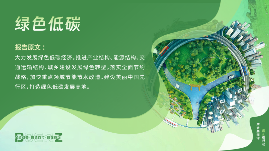 今年兩會,“綠色低碳”更是成為提案高頻詞。政府工作報告中提到:大力發展綠色低碳經濟。推進產業結構、能源結構、交通運輸結構、城鄉建設發展綠色轉型。