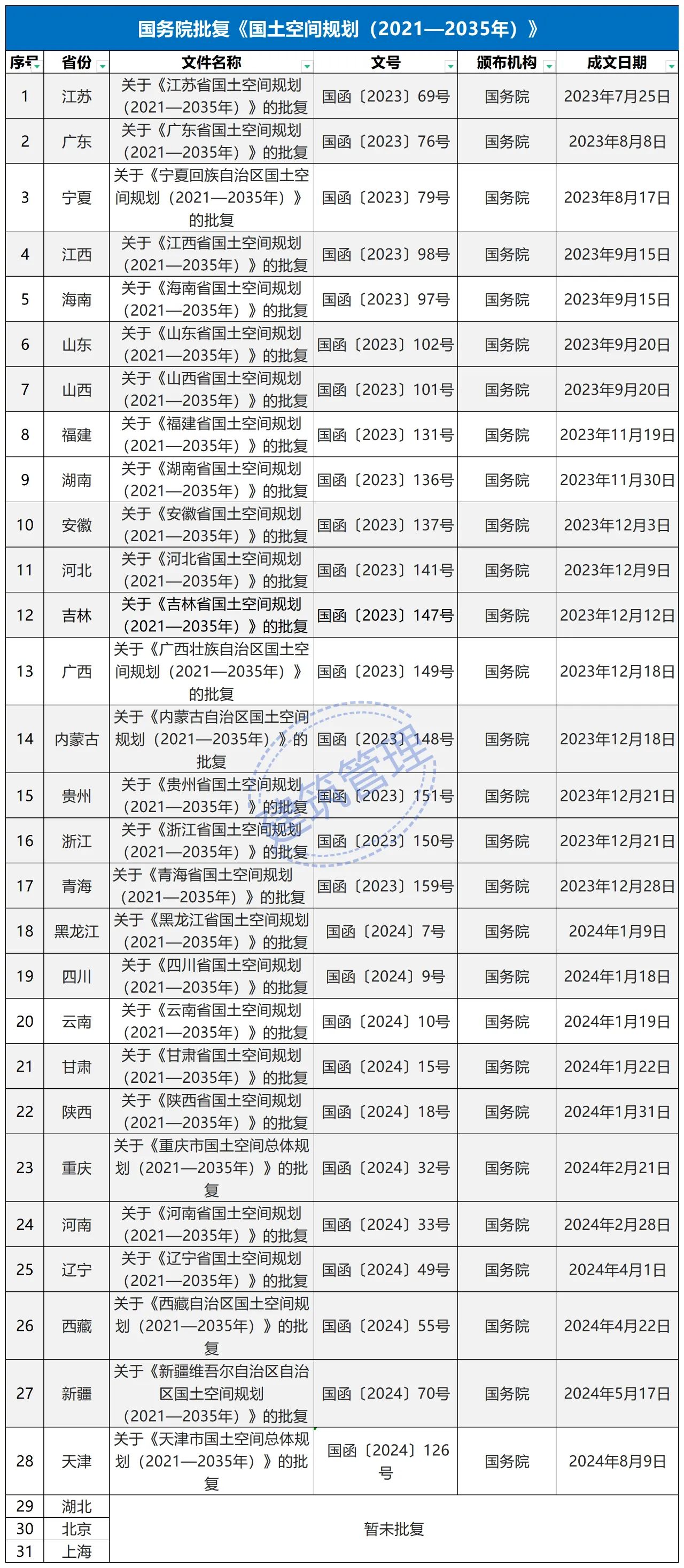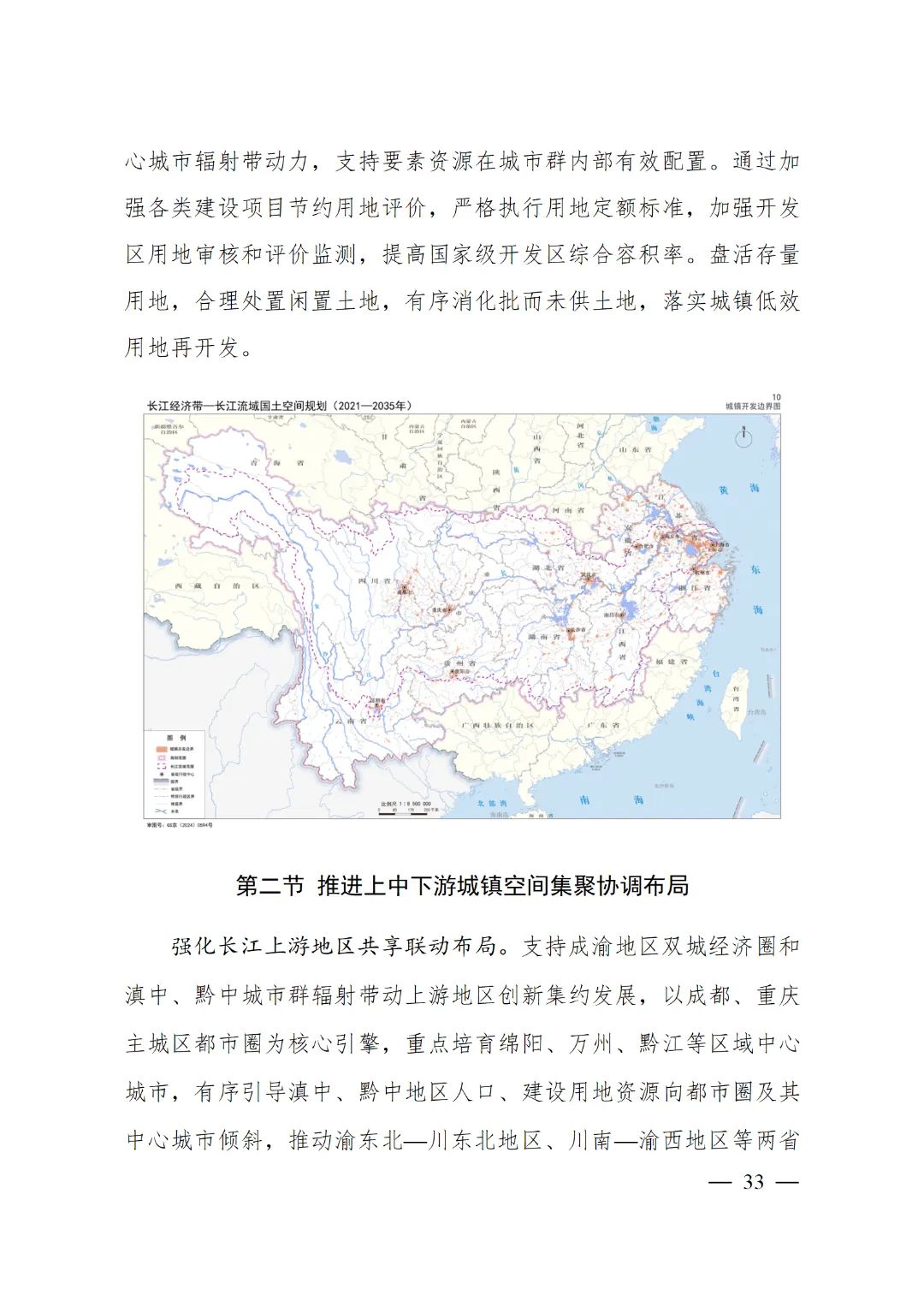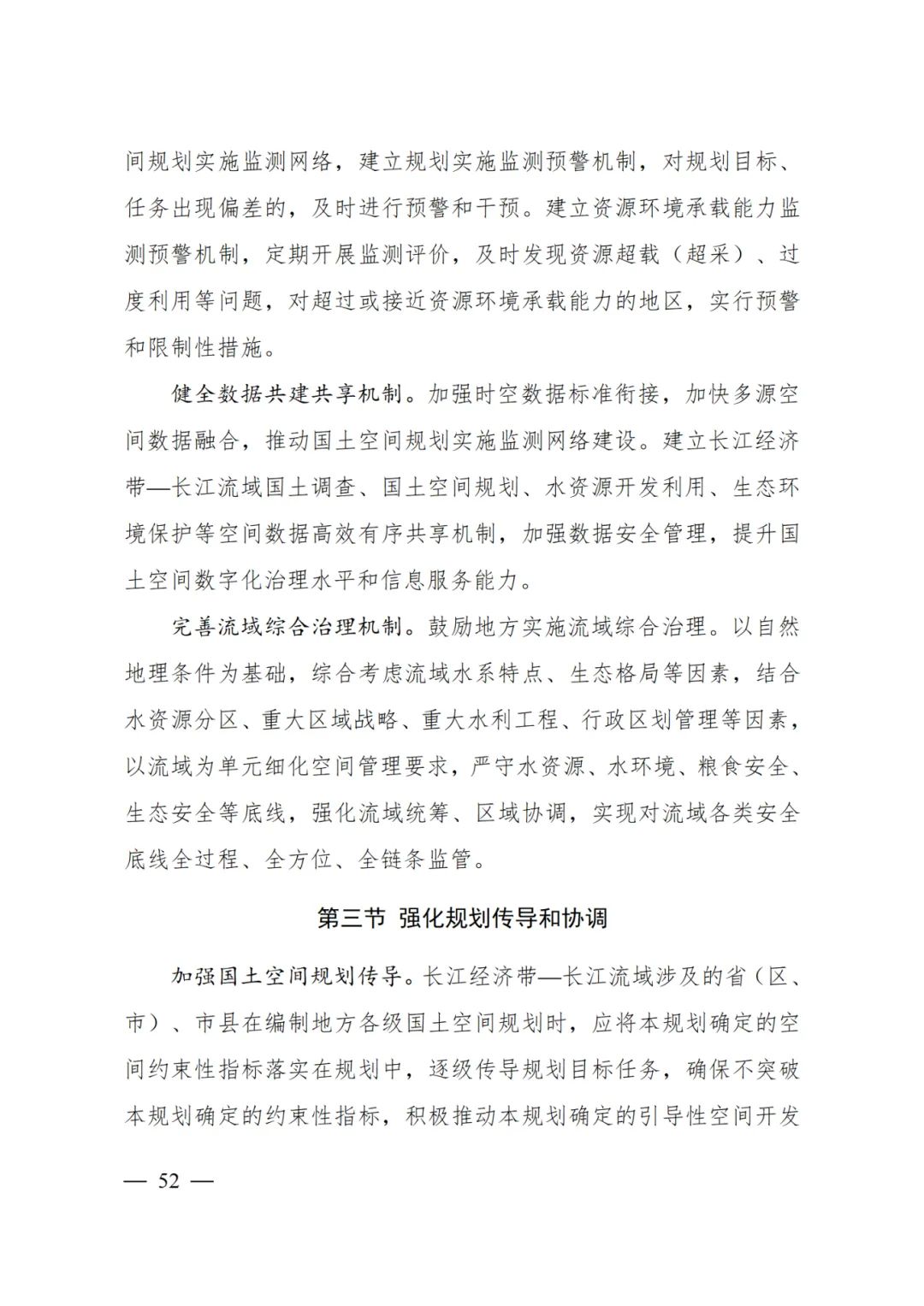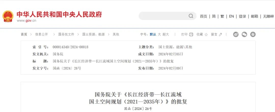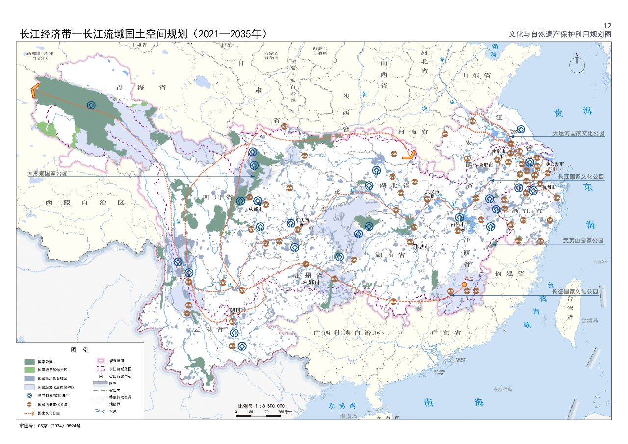 2024年2月9日,《長江經濟帶—長江流域國土空間規劃(2021—2035年)》經國務院批復同意。9月10日,自然資源部正式印發《長江經濟帶—長江流域國土空間規劃(2021—2035年)》。規劃范圍包括長江經濟帶11個省(市)全域,以及《長江保護法》規定的長江流域其他8?。▍^、市)的相關縣級行政區域,共計1173個縣級行政區域。規劃范圍包括陸域國土和內水、領海。其中,陸域面積240萬平方公里。(后附規劃范圍詳細表格)規劃期限為2021年至2035年。