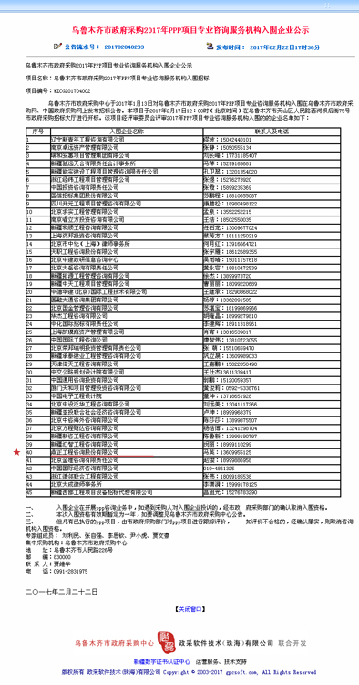【經(jīng)營成果】我司成功入圍烏魯木齊市政府采購2017年P(guān)PP項目專業(yè)咨詢服務(wù)機構(gòu)庫