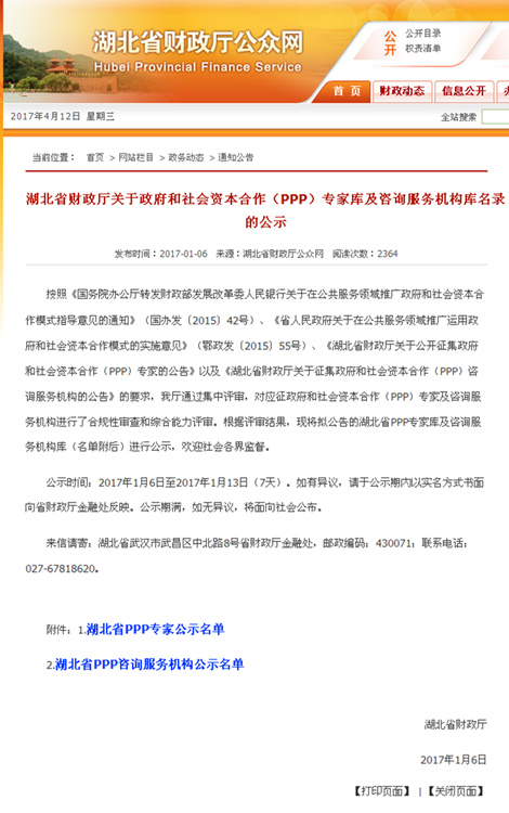 我司入選湖北省財(cái)政廳PPP咨詢服務(wù)機(jī)構(gòu)庫,同時(shí)3位同事入選湖北PPP專家?guī)?/span>