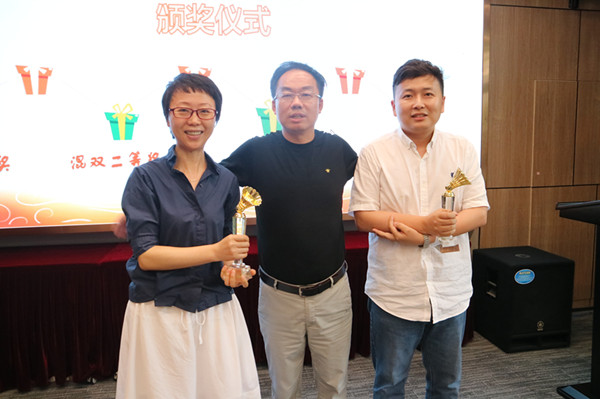 董事長王雁然為混雙一等獎獲得者毛迎霞、張虎頒獎