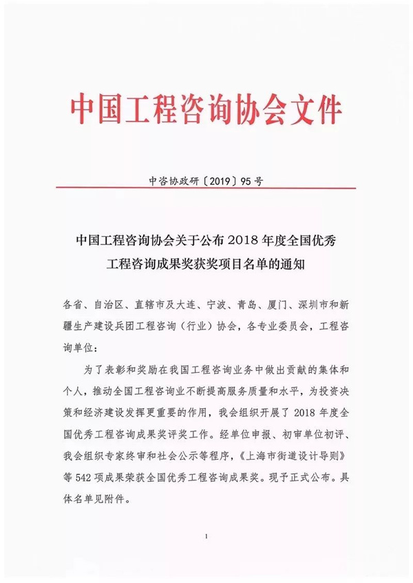 “全國優(yōu)秀工程咨詢成果獎”自1996年經(jīng)國家發(fā)改委批準(zhǔn)正式設(shè)立,后經(jīng)國務(wù)院監(jiān)察部確認(rèn)保留,并由中國工程咨詢協(xié)會每兩年組織評選一次的工程咨詢行業(yè)的全國性獎項,旨在表彰和獎勵在我國工程咨詢業(yè)務(wù)實踐中做出突出貢獻(xiàn)的集體和個人,獲獎項目被認(rèn)為是代表我國工程咨詢界最高水平的項目,其工程咨詢成果具有創(chuàng)新性和推廣應(yīng)用前景,能夠積極地推動全國工程咨詢業(yè)服務(wù)質(zhì)量和水平的不斷提高,促進(jìn)投資決策科學(xué)、規(guī)范地實施,更好地為我國經(jīng)濟(jì)建設(shè)發(fā)展提供專業(yè)的咨詢服務(wù)。