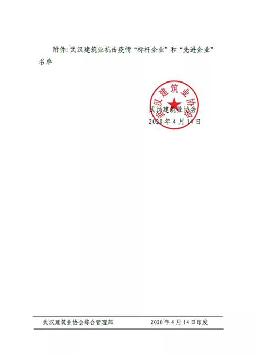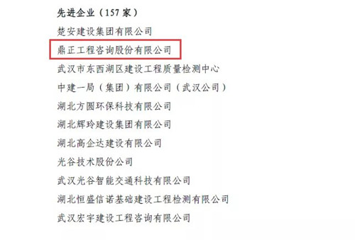 4月14日,武漢建筑業協會發布《武建協〔2020〕20 號——關于表彰武漢建筑業抗擊疫情“標桿企業”、“先進企業”的決定》,對在抗疫“主戰場”積極擔責,奮不顧身、盡銳出戰,與死神賽跑、與疫魔競速的27家武漢建筑業“標桿企業”、157家“先進企業”進行表彰。鼎正咨詢因在武漢抗擊疫情過程中表現突出,獲評“先進企業”榮譽稱號。
